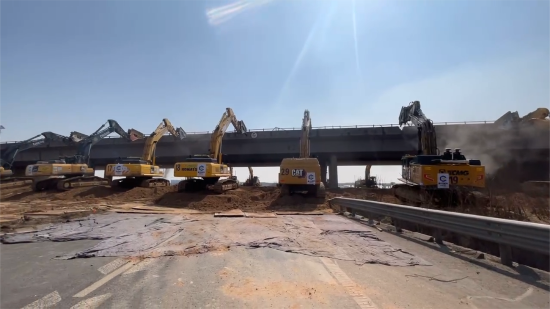 此次沈海高速改扩建工程全线跨线桥拆除将分两次进行,本次为第一阶段共36座跨线桥的拆除施工,作业内容包括省道S102上跨沈海高速的分离立交、K645+301上承式钢筋混凝土拱桥等拆除混凝土方量大、结构形式复杂的跨线桥。对此,交发集团会同各参建单位提前谋划、精心组织,做好拆桥前安全交底、检查以及交通调流、拆桥等准备工作。目前工程全线300余台挖机同时开工,全体施工人员通宵压茬作业,加快拆除进度,尽快恢复主线通车。