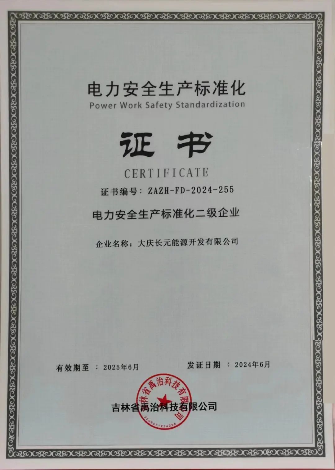 彩票app 新能源集团所属三家项目公司获得电力安全生产标准化二级企业证书