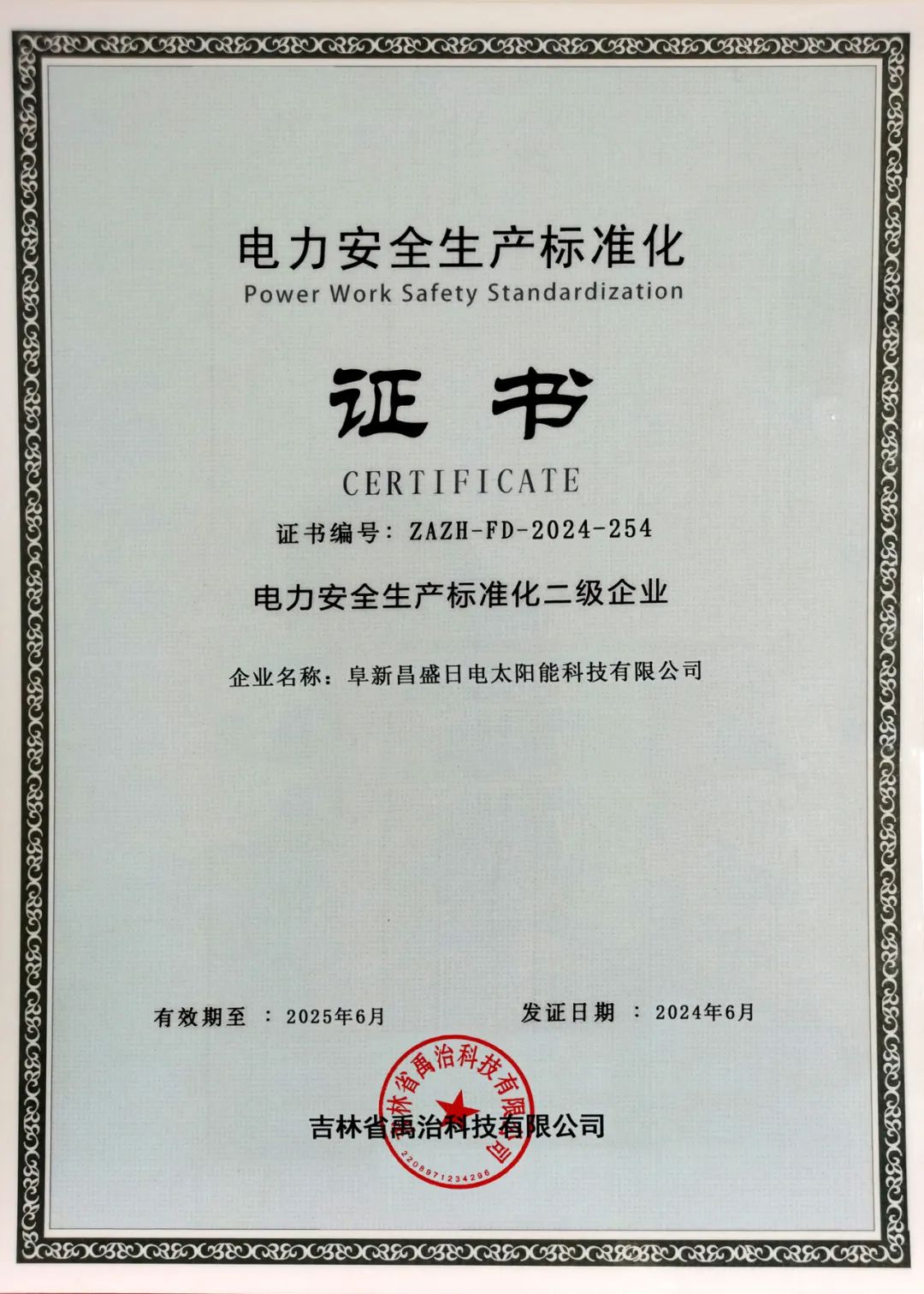 近日,彩票app 旗下新能源集团所属的三家项目公司阜新昌盛日电太阳能科技有限公司、东丰丰盛太阳能科技有限公司和大庆长元能源开发有限公司,成功通过了电力安全生产标准化企业二级达标认证,并荣获了电力安全生产标准化二级企业证书。这一成就是彩票app 新能源集团在安全生产标准化和安全管理体系建设方面取得的重要进展。