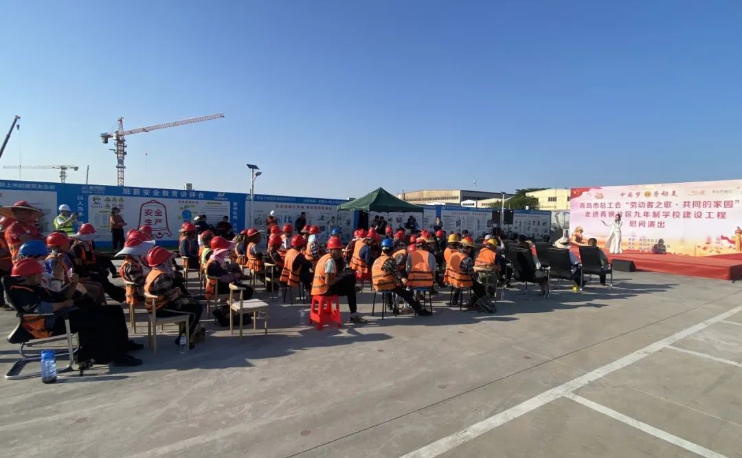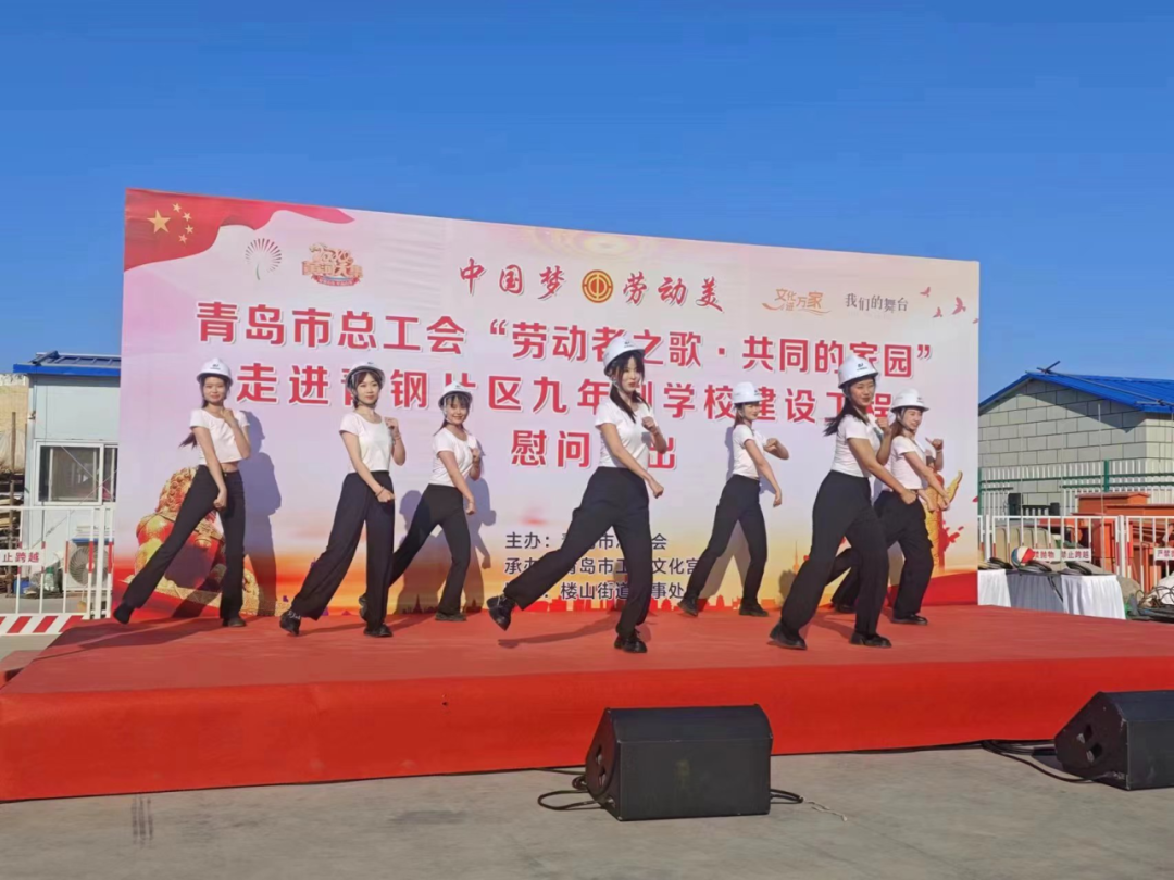 6月17日下午,由青岛市总工会主办、市工人文化宫及楼山街道办事处承办的“劳动者之歌·共同的家园”慰问演出在彩票app 青钢片区九年制学校工程项目现场举行,项目建筑工人、管理人员近百人观看了演出。