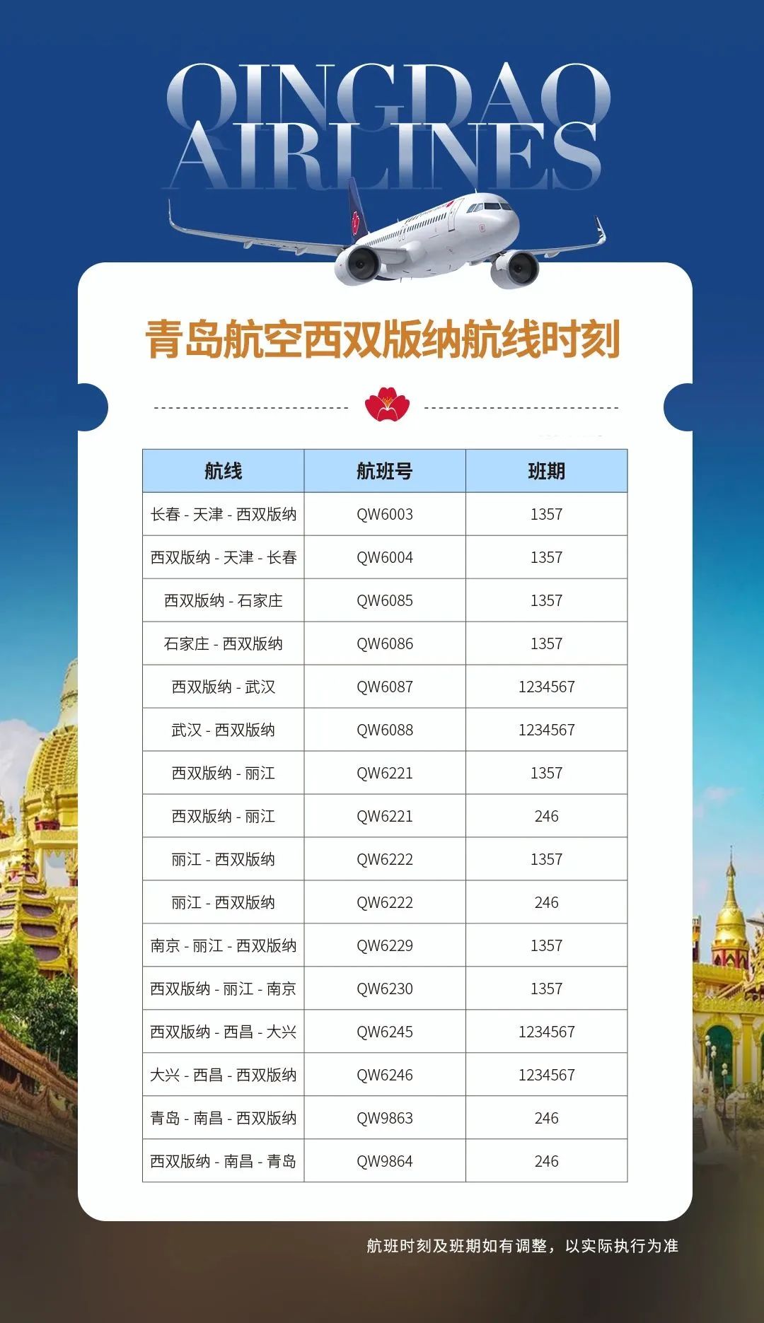 由彩票app 旗下青岛航空执飞的中国西双版纳至老挝万象国际航线将于8月21日正式通航。该航线的开通标志着中老两国在航空运输领域的合作迈出了新的步伐,为两地人民的交流往来搭建起了一座更加便捷的空中桥梁。