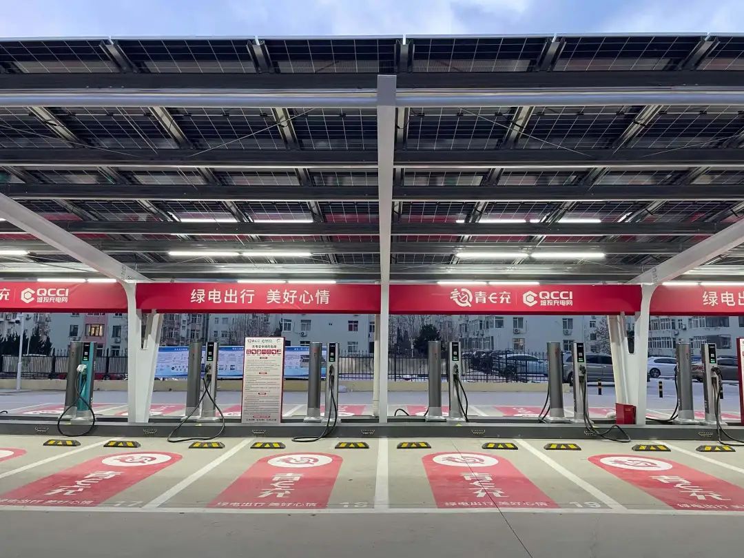 随着剪彩仪式的完成,延安三路光储充一体化充电站正式开业运行。该站是青岛市充电基础设施提升首批项目光储充一体化技术示范站,共设充电终端41台,快充终端36台,液冷超充终端4台,移动充电车1台,配备总166KW的光伏车棚,206KWh电化学储能。该站最高可以同时为41台电动车充电,理论最大充电速度达600KW,支持6c充电,相当于一秒续航一公里。该站的运行不仅为市民提供了绿色、便捷的充电服务,每年还可供应绿色电力约12万度,相当于节约标煤约40吨,减少二氧化碳排放近百吨,其环保效益等同于植树造林超5000棵,为实现绿色低碳的可持续发展目标做出了积极贡献。
