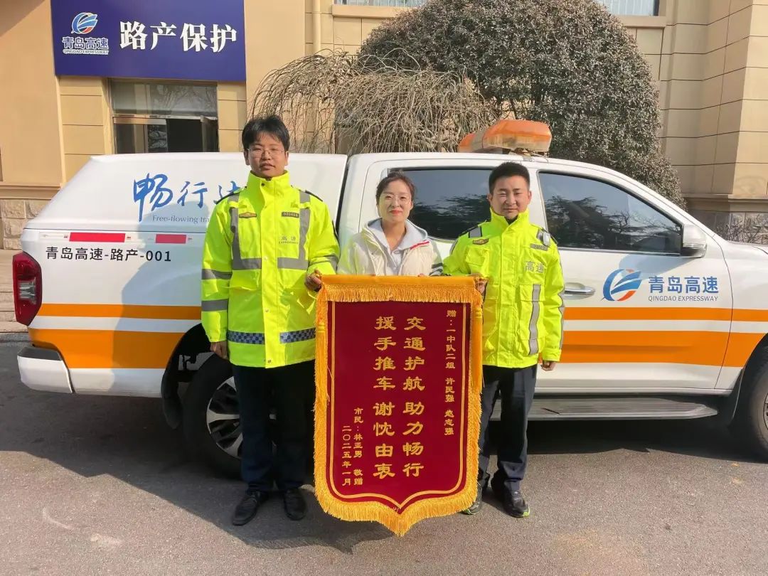 近日,青岛高速收到了一面从河北省寄来的锦旗。这面锦旗背后,是一段发生在1月20日的温暖故事。当天上午,胶莱收费站出口车辆正在有序通行。一辆白色小轿车突然发出一声巨响,车辆爆胎后剧烈摇晃,停在了车道内。车内司乘惊慌失措,年幼的孩子也吓得大哭起来。当班班长李倩倩迅速赶到车旁,一边轻声安抚着惊慌的司机和哭泣的孩子,一边向上报告情况。随后,与同事合力将车推到出口外广场的安全位置,摆好锥形帽,做好安全防护措施。紧接着,他们又从后备箱拿出千斤顶和扳手,熟练地帮助更换备用轮胎。车辆修好后,司机激动得表达着感谢。之后,还拨打了青岛高速96586服务热线,再次表达心中的感激。因为已经回到老家,司机无法亲自送锦旗,便选择用邮寄的方式,传递这份真挚的谢意。