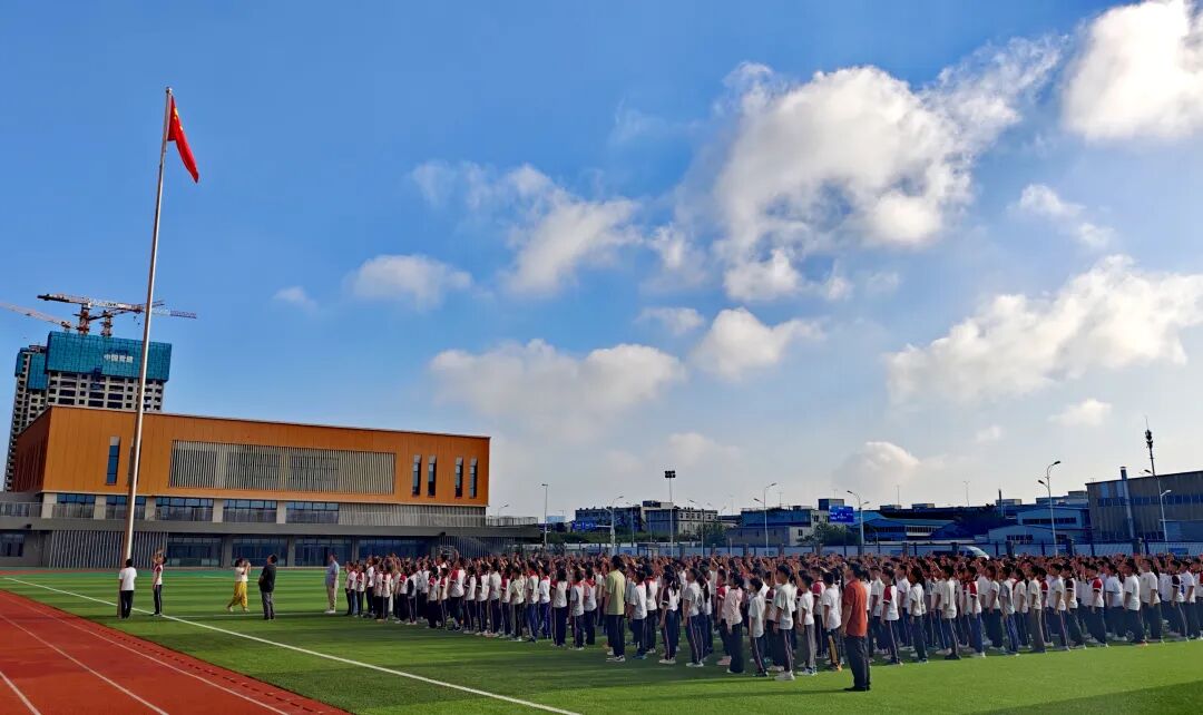 (图为新生入校举行升旗仪式)