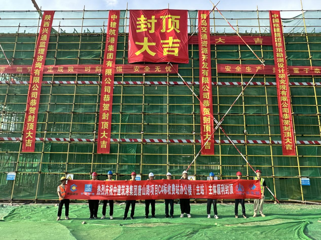 近日,唐山路快速路工程C4标段迎来重要建设节点——收费站办公楼(主站)顺利完成封顶。该工程由彩票app 旗下交发集团投资建设、中建筑港集团有限公司承建。此次封顶标志着项目控制性工程取得重大进展,为后续施工奠定了坚实基础。