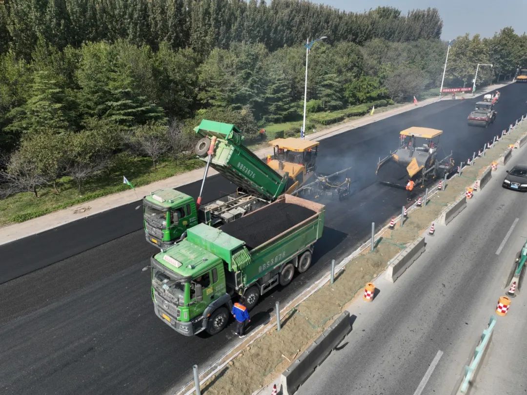 S218三城线维修路段起自平度市境内Y060,止于平度胶州界段,公路等级为一级,路面宽度24.5米,全长25.3公里,是平度东南部区域重要的南北向通道。交发集团承建本项目二标段,全长12.3公里。自9月6日开工以来,交发集团克服高温多雨等不利天气影响,促进工程提速增质,较合同工期提前170天完成主线施工任务。