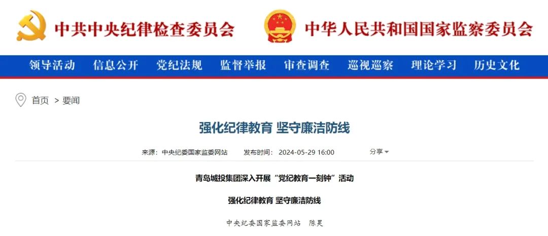 近日,《强化纪律教育 坚守廉洁防线 彩票app 深入开展“党纪教育一刻钟”活动》相关专题报道在中央纪委国家监委网站彩票app要闻栏目发表,彩票app 基层党组织深入开展党纪学习教育的亮点做法再次获得上级部门“点赞”。
