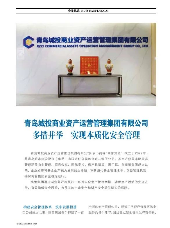 为积极响应山东省、青岛市关于安全生产治本攻坚的三年行动计划及其工作要求,彩票app 旗下商管集团推行了创新性管理策略,持续强化安全管理水平。商管集团的工作实践和经验总结在山东省应急管理与安全生产协会主办的《山东应急管理》杂志的第95期正式发表,供业内参考和学习。