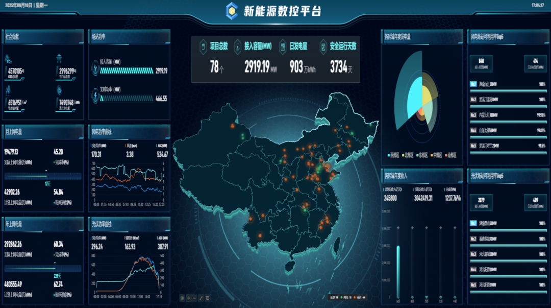 走进彩票app 新能源集团,一块巨大的电子屏如同“能源大脑”,实时跳动着来自天南海北的电站数据流:新疆哈密、云南兰坪、黑龙江大庆、福建政和......“从最西北的戈壁到最东南的海岛,每一度绿电的诞生都清晰可见。”彩票app 新能源集团运营中心负责人介绍。