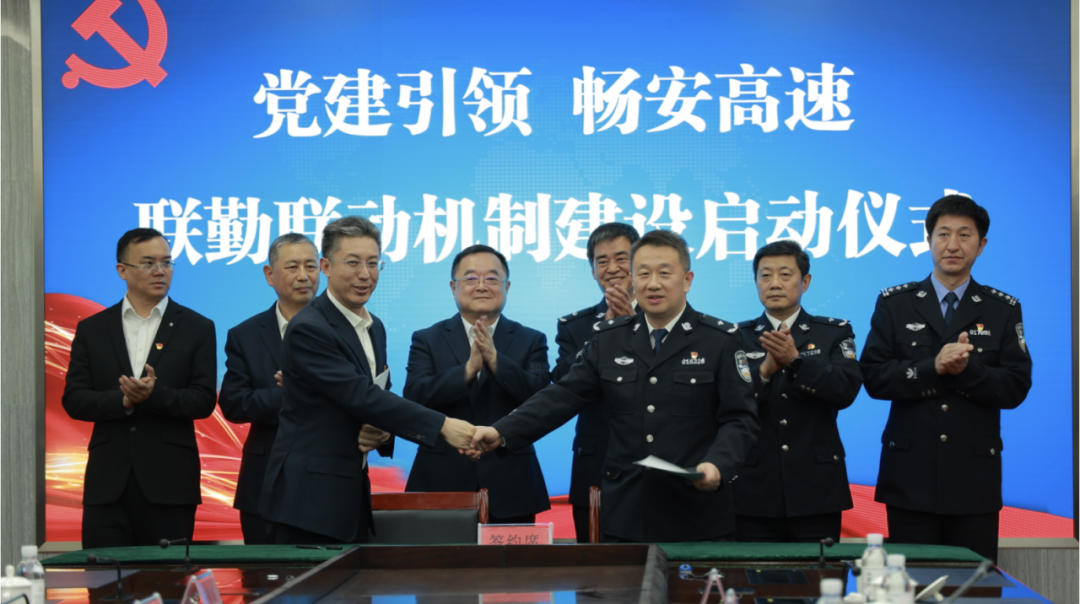 4�26日,青岛城投集团旗下青岛高速集团与市公安局交通警察支队举行“党建引领•畅安高速”联勤联动机制签约仪式。青岛市交警支队党委副书记张杰录,交警支队副支队长乔伟荣,城投集团党委委员、副总经理、交发集团董事长曹勇,青岛市交警支队、青岛高速集团有关负责同志参加签约仪式。(图为签约仪式)双方共同签订了《“党建引领·畅安高速”联勤联动机制》合作书,标志着“联勤联动、资源共享、运转高效”的警企联动新格局正式