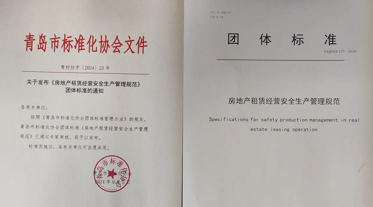 彩票app 主编的青岛市团体标准《房地产租赁经营安全生产管理规范》发布实施