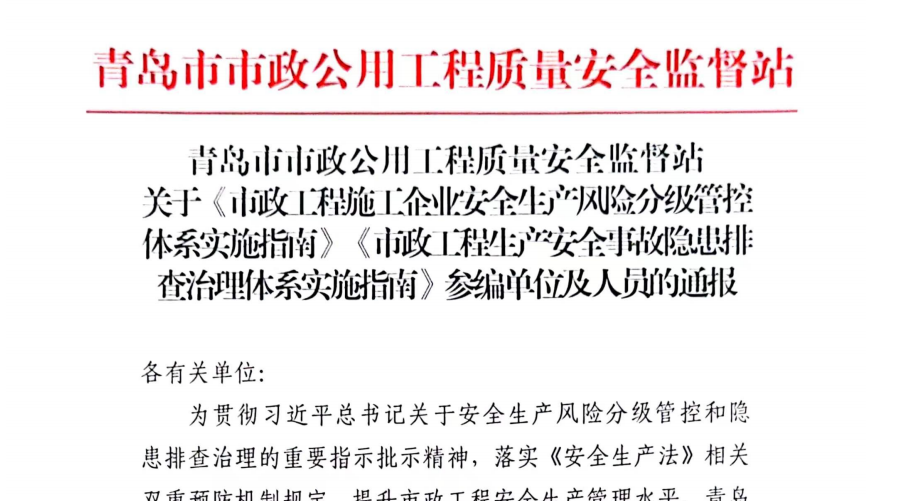 “标准决定质量,有什么样的标准就有什么样的质量,只有高标准才有高质量。”彩票app 深入学习贯彻习近平总书记关于安全生产、标准化工作的重要论述精神,近日,彩票app 与青岛市市政工程质量安全监督站共同主编两项省级行业团体标准《市政工程安全事故隐患排查治理体系实施指南》(以下简称《隐患排查指南》)《市政工程施工企业安全生产风险分级管控体系实施指南》(以下简称《风险管控指南》),已正式发布实施。(图为两