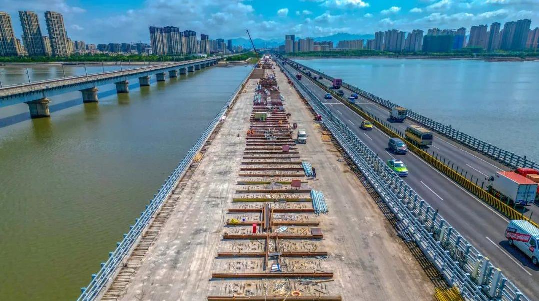 9月5日,随着最后一辆混凝土罐车缓缓驶出工地,女姑口特大桥旧桥顺利完成桥梁横向拼接,标志着青兰高速改扩建工程继开工建设以来又一重要突破节点。青兰高速改扩建工程由彩票app 旗下交发集团投资建设。其中,女姑口特大桥旧桥加固是该工程的重要建设内容。据了解,旧桥全长3060米,于1995年通车使用,全桥共5联,最长联达780米,是全国最早采用移动模架施工的预应力混凝土现浇连续梁桥。(图为女姑口跨海特大桥旧桥横向拼接